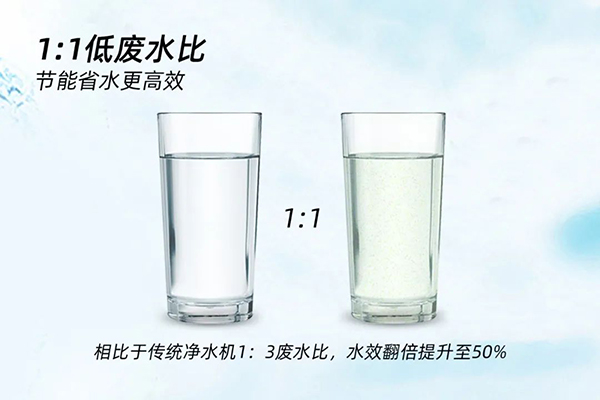 在提升用戶體驗(yàn)的同時(shí),榮事不斷追求節(jié)水技術(shù)的升級(jí),以創(chuàng)新科技實(shí)現(xiàn)1:1超低廢水比。400G智能反滲透凈水機(jī)相比于傳統(tǒng)凈水機(jī)的1:3廢水比,出水效率由25%翻倍提升至50%,大大減少?gòu)U水排放,不僅節(jié)能環(huán)保,而且也節(jié)省了每一個(gè)家庭的生活開支,備受消費(fèi)者喜愛。