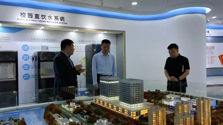 領(lǐng)導(dǎo)一行參觀了解集團(tuán)全屋智慧凈水、管道直飲水、校園智慧飲水、單位/工廠直飲水等項(xiàng)目,實(shí)現(xiàn)凈水行業(yè)全領(lǐng)域項(xiàng)目發(fā)展。