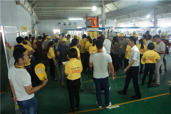 14日下午,渠道開發(fā)部張總給與會(huì)學(xué)員作了企業(yè)文化講座,介紹了品牌發(fā)展歷史及公司研發(fā)、生產(chǎn)、銷售、服務(wù)等方面的發(fā)展現(xiàn)狀,并展示了公司取得的榮譽(yù)資質(zhì)以及積極踐行的公益活動(dòng)。之后,在渠道開發(fā)部王部長(zhǎng)等一行工作人員的帶領(lǐng)下,廣大學(xué)員對(duì)生產(chǎn)園區(qū)進(jìn)行實(shí)地考察,見證公司規(guī)模實(shí)力。學(xué)員們?cè)趶S房體驗(yàn)了先進(jìn)生產(chǎn)環(huán)境,通過(guò)參觀生產(chǎn)線、檢測(cè)線、包裝區(qū),切身感受榮事達(dá)生產(chǎn)、檢測(cè)產(chǎn)品的嚴(yán)格規(guī)程和標(biāo)準(zhǔn),了解榮事達(dá)臻于細(xì)節(jié)的產(chǎn)品包裝措施。