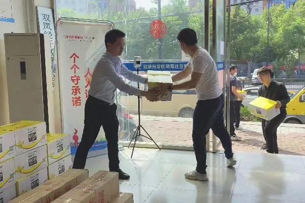 現(xiàn)場(chǎng),鳳霞社居委書記劉政鳳、鳳霞社居委吳偉主任對(duì)捐贈(zèng)物資進(jìn)行了接收存放。