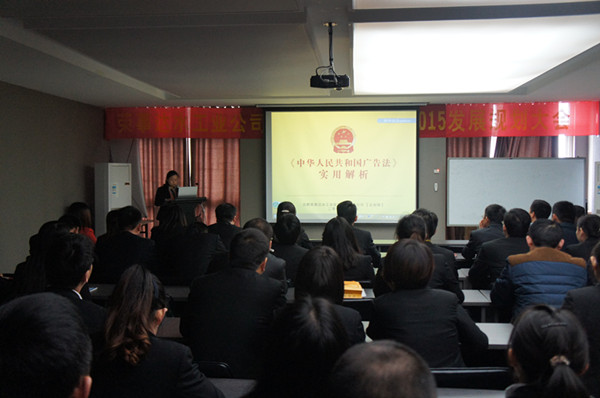 新修訂的《中華人民共和國廣告法》于9月1日起正式施行,為更好地貫徹、落實新廣告法,保證公司市場宣傳語營銷活動的有序進行,11月10日下午,榮事達(dá)水工業(yè)公司新廣告法學(xué)習(xí)會議在智能研發(fā)中心三樓會議室召開,公司各事業(yè)部、成員單位總經(jīng)理及企宣、銷售等相關(guān)人員濟濟一堂,共同學(xué)習(xí)了新廣告法的相關(guān)規(guī)定。