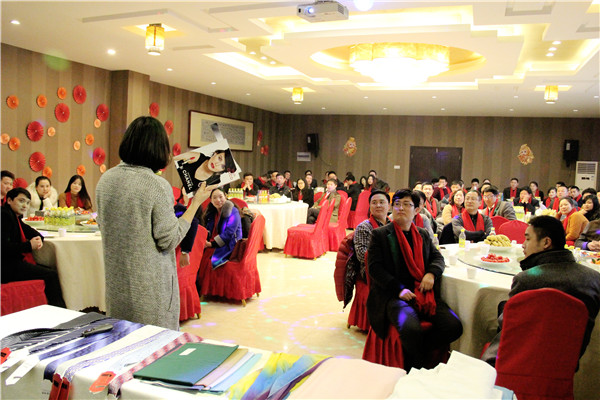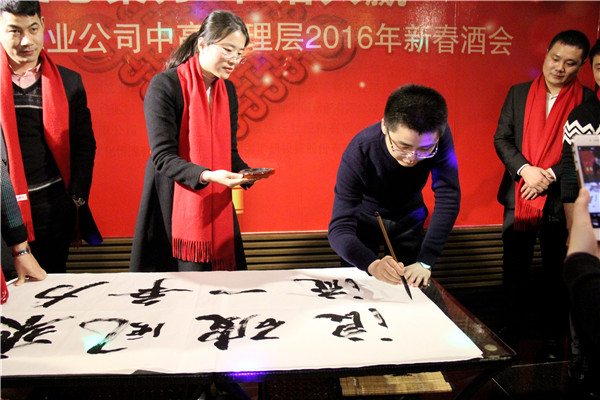 酒會上,雷鳴董事長作了重要講話,向全體中高管理層成員拜年,感謝全體成員一年來為公司發(fā)展辛苦的付出與努力,并希望新的一年大家共同努力,讓公司繼續(xù)大展宏圖、欣欣向榮。之后,各分公司、事業(yè)部、部門紛紛以創(chuàng)新、幽默、多樣的方式向全體參會人員拜年。生產制造中心以喜慶的春聯(lián)為依托,在表達新春祝福的同時,還帶來了印有“安全第一 質量為本”字樣的員工集體簽名橫幅,為確保產品質量作出承諾;凈水家電事業(yè)部總經理王悅生的現(xiàn)場即興題字,用丹青妙筆表達了其部門成員奮勇爭先的目標和信心;工程事業(yè)部總經理劉東帶領其部門成員所采用的“三句半”拜年方式贏得了滿堂喝彩;財務部與企劃部共同合作的“異口同聲”有獎競猜創(chuàng)意拜年,更是傳達了“榮事達一家親”的美好寓意。