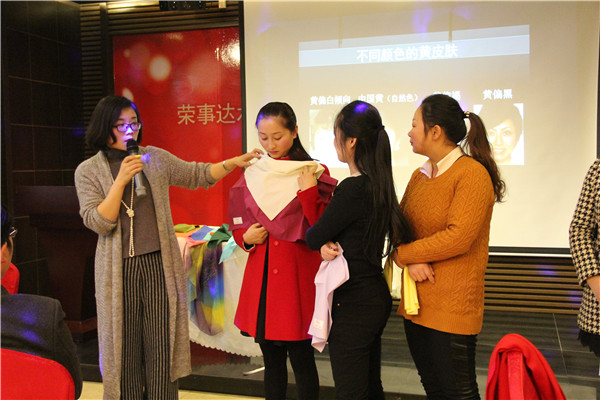 下午14時,公司領導在古色古香、靈秀生動的會場欣賞了美術館內所珍藏的精美絕倫的油畫與雕塑作品;參加了由亞洲色彩形象中心認證講師殷麗主講的顏值管理課程;與專業(yè)茶藝老師交流了品茗、泡茶方法。在顏值講座環(huán)節(jié),通過講師精湛的理論講解、幽默的互動交流、詳盡的案例分析,榮事達管理層成員對商務場合下儀容、禮儀、肢體語言的重要作用和實踐規(guī)范進行了系統(tǒng)學習。