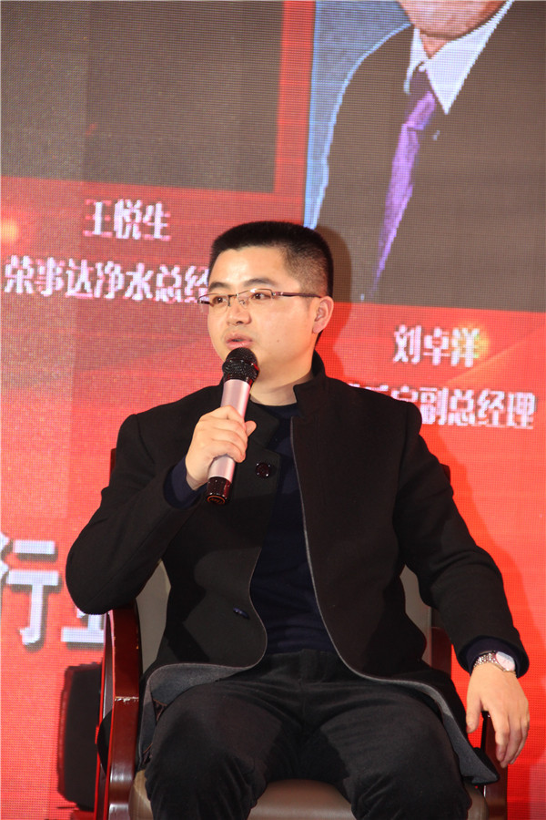 頒獎盛典結(jié)束后,進入至關(guān)重要的領(lǐng)袖峰會環(huán)節(jié)。行業(yè)大佬齊聚一堂,共謀凈水事業(yè)大發(fā)展。榮事達凈水總經(jīng)理王悅生、海爾凈水副總經(jīng)理陳鵬、安吉爾副總裁沈鈞等知名企業(yè)代表圍繞“凈水企業(yè)如何應(yīng)對行業(yè)大洗牌”的論壇主題,進行深入的交流和探討,對行業(yè)的未來發(fā)展趨勢做出指導(dǎo)。王悅生論及產(chǎn)品這個基本點,提出應(yīng)立足用戶體驗對產(chǎn)品進行創(chuàng)新升級,重視物聯(lián)網(wǎng)發(fā)展,推動產(chǎn)品結(jié)構(gòu)變革。會后,王悅生接受了新浪等多家媒體的專訪。