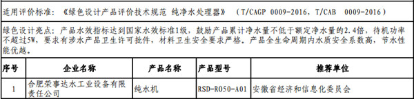 - 熱烈祝賀榮事達純水機入選2017年第一批綠色制造示范名單