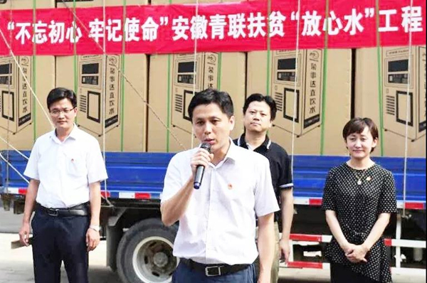 為深入學習貫徹習近平新時代中國特色社會主義思想和黨的十九大精神,特別是深入學習習近平總書記在紀念五四運動100周年大會上的重要講話精神,充分發(fā)揮青聯(lián)委員作為青年工作骨干的作用,推動青聯(lián)組織助力精準脫貧工作的深入開展,在全國青聯(lián)的統(tǒng)一部署下,團省委、省青聯(lián)啟動“青力扶貧 聯(lián)創(chuàng)夢想”扶貧行動,與榮事達水工業(yè)集團攜手啟動“不忘初心 牢記使命”健康扶貧“放心水”工程。7月1日,啟動儀式在合肥市蜀山區(qū)南崗鎮(zhèn)文化館舉行。