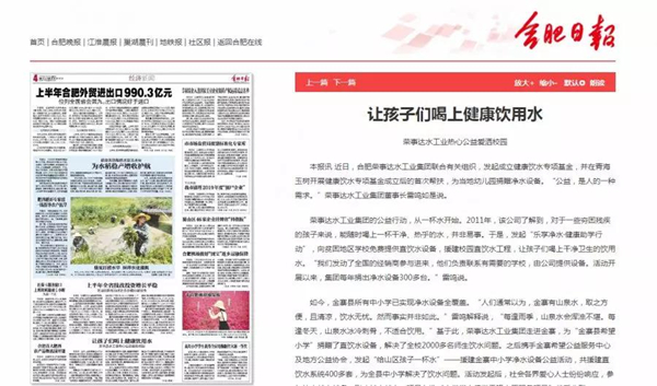 合肥日報(bào) 《讓孩子喝上健康飲用水》