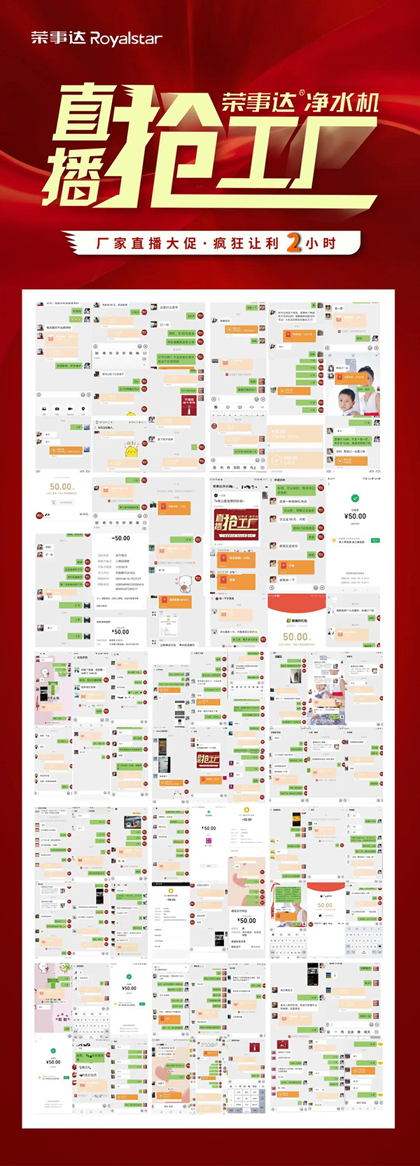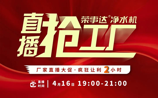 瞄準(zhǔn)網(wǎng)絡(luò)化營(yíng)銷聚變新格局,榮事達(dá)水工業(yè)集團(tuán)以創(chuàng)新思維持續(xù)引領(lǐng)凈水銷售模式升級(jí),借力現(xiàn)場(chǎng)感與代入感超強(qiáng)的新媒體直播平臺(tái),貫通線上線下渠道,助力經(jīng)銷商快速銷售。4月16日,榮事達(dá)2020年硬核大動(dòng)作——“榮事達(dá)凈水機(jī)?直播搶工廠”網(wǎng)絡(luò)直播營(yíng)銷活動(dòng)強(qiáng)勢(shì)落地,贏戰(zhàn)市場(chǎng)!