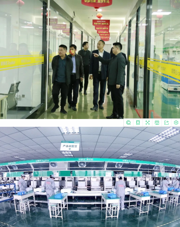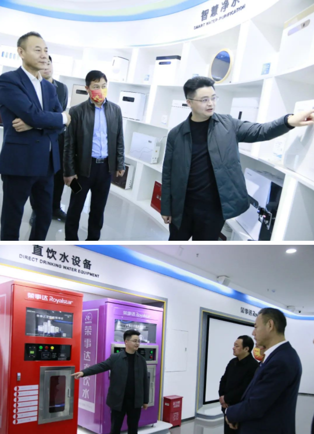 領導一行先后參觀了榮事達商用設備生產車間、榮事達智能家用凈水生產車間和智慧水世界展廳。了解榮事達企業(yè)綜合實力及十大水處理系統(tǒng)具體發(fā)展狀況。