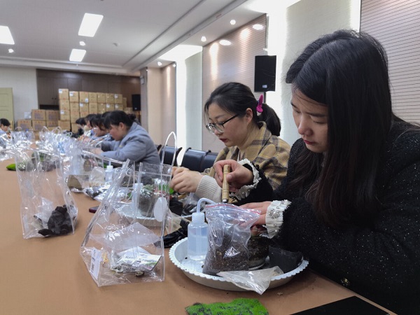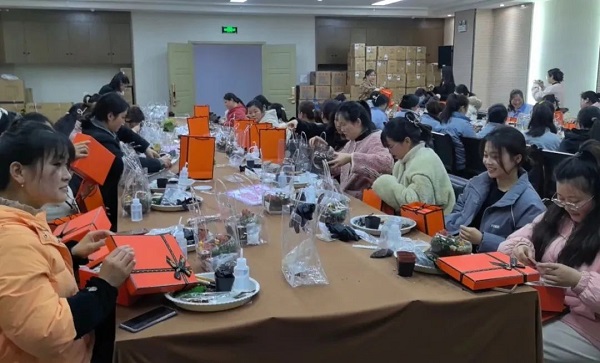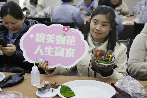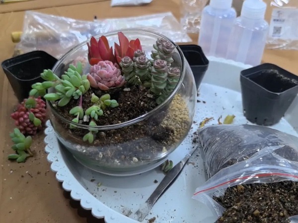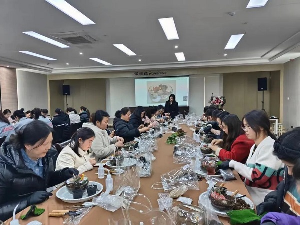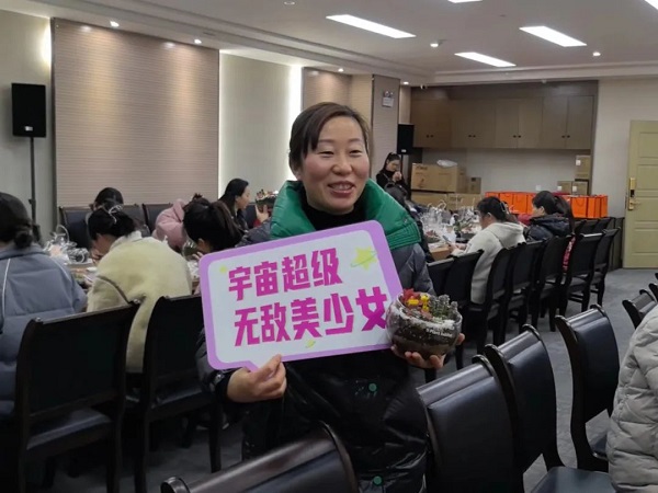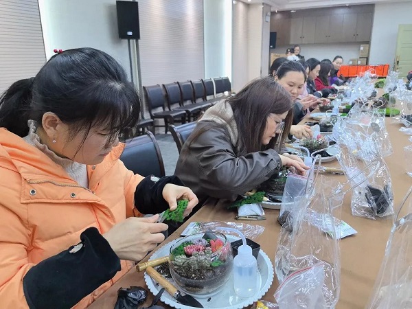 在DIY過程中,大家互相交流、分享心得,笑聲和談話聲此起彼伏。有的女神選擇了簡(jiǎn)約風(fēng)格,將多肉植物種植在小巧精致的花盆里,展現(xiàn)出一種清新脫俗的美;有的則選擇了色彩豐富的搭配,將不同顏色的多肉組合在一起,創(chuàng)造出一幅幅生動(dòng)的畫面。