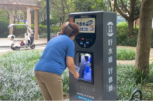 此次入駐安高 · 城市天地,榮事達(dá)水工業(yè)團(tuán)隊經(jīng)過精心設(shè)計和施工,確保凈水工廠與小區(qū)環(huán)境和諧共生,更多的滿足居民打水的便捷性,共設(shè)有近二十個終端取水點(diǎn)。