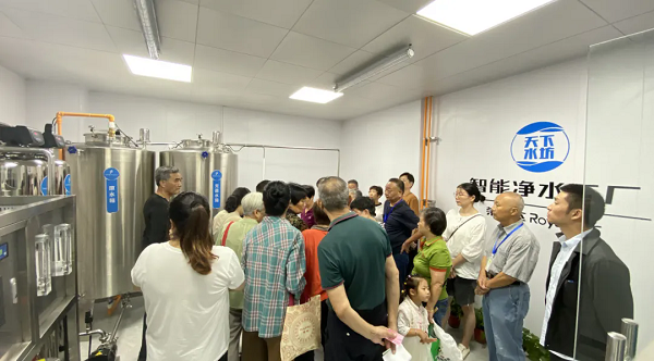 工作人員向居民詳細(xì)介紹了智能凈水工廠的工藝流程、技術(shù)優(yōu)勢以及后期的維護(hù)管理等。居民在見證了榮事達(dá)智能凈水工廠的整體規(guī)模實(shí)力后,對凈水工廠的水質(zhì)安全十分安心,表示今后家庭飲水就喝榮事達(dá)智能凈水工廠的直飲水。