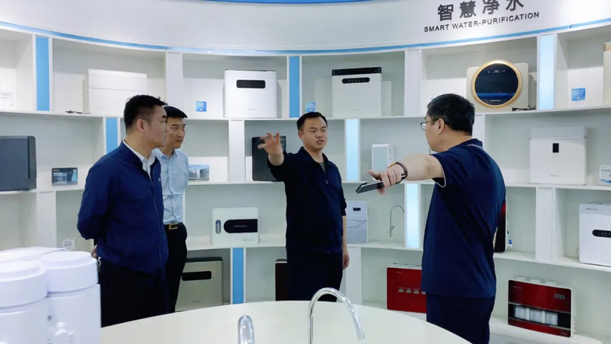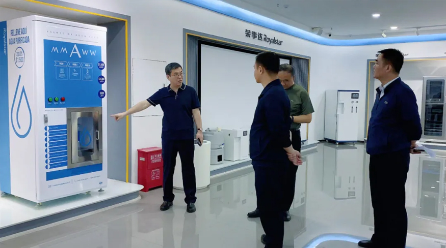領導一行了解到榮事達水工業(yè)作為全國凈水行業(yè)的“一帶一路”先鋒企業(yè),始終秉持著品牌建設和產品質量的核心理念,積極投身于海外市場的開拓與深耕,與多國建立貿易合作,從產品到工程,公司加速全球化營銷網絡構建,國際化步伐加快。