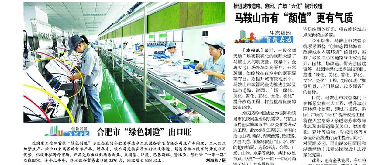 厲害了!!《歐洲時(shí)報(bào)》魅力安徽專版報(bào)道 榮事達(dá)綠色制造出口旺 一帶一路暢銷海外【報(bào)道原文】 獲國(guó)家工信部首批“綠色制造”示范企業(yè)的合肥榮事達(dá)水...