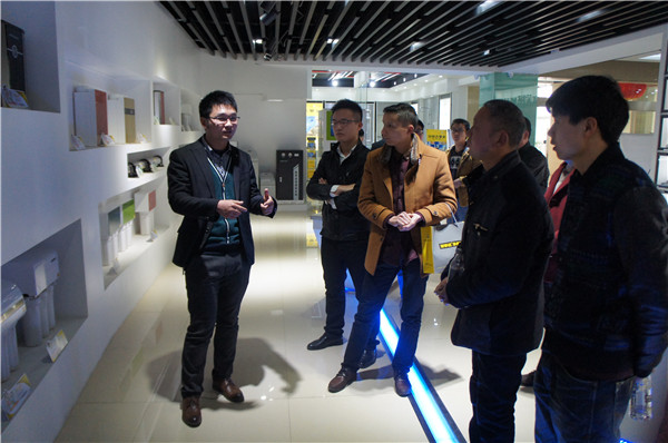 在產(chǎn)品展廳,華中大區(qū)總監(jiān)劉明明為參觀人員介紹了公司產(chǎn)品種類、功能,并分析了凈水行業(yè)的現(xiàn)狀和發(fā)展前景。之后,一行十余人參觀了園區(qū),看到整齊停放的服務車,參觀者連連稱贊公司這一加盟政策給力,既方便了代理商跑市場,又是十分有效的宣傳方式。在生產(chǎn)車間,參觀者一邊認真聽取講解,一邊仔細觀看生產(chǎn)環(huán)節(jié),零距離接觸生產(chǎn)線,親身感受操作流程。