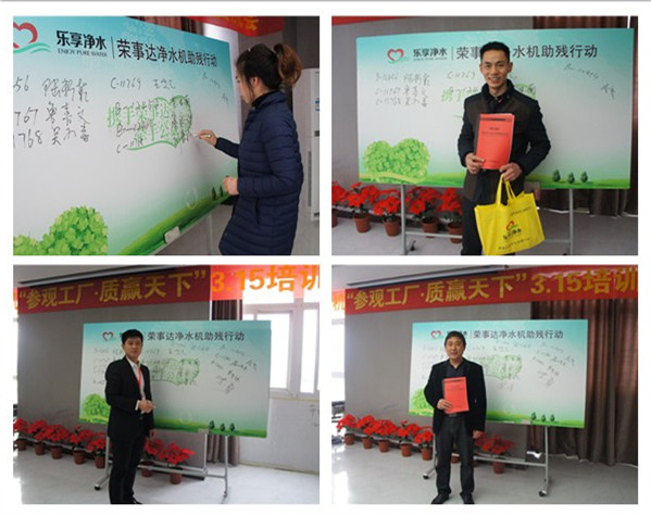 與會的許多意向客戶在一天半的觀摩、學(xué)習(xí)中,了解了榮事達(dá)水工業(yè)公司的過硬的軟、硬實力,見證了榮事達(dá)凈水機卓越的產(chǎn)品質(zhì)量和完善的售后保證,更感受了公司作為凈水名企的品牌信譽、行業(yè)地位、社會擔(dān)當(dāng)。會后,近九成意向客戶立即簽訂了合作協(xié)議,與榮事達(dá)攜手合作。為了酬謝廣大客戶,榮事達(dá)精心準(zhǔn)備了四輪抽獎環(huán)節(jié),多款精美禮品悉數(shù)送出。其中,20多位合作客戶在終極大獎環(huán)節(jié)幸運抽得公司精心準(zhǔn)備的4套凈水設(shè)備,用于開展“樂享凈水”助殘行動。