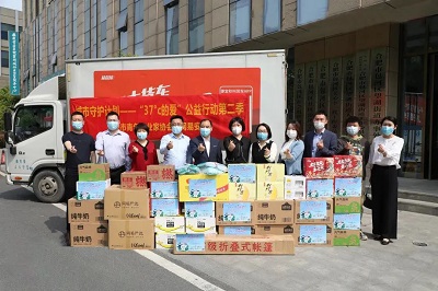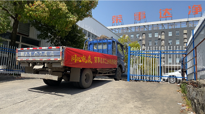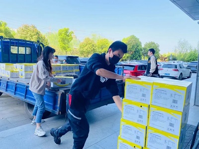 4月8日榮事達(dá)水工業(yè)集團(tuán)工作人員以最快的速度進(jìn)行物資的裝載,滿載著抗疫物資,發(fā)往37℃的愛活動統(tǒng)籌處。