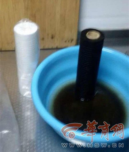 該小區(qū)多家住戶使用的是同一品牌的凈水器,該凈水器廠家一負(fù)責(zé)人解釋,凈水器都有前置濾芯和后置濾芯,一般都是建議6個(gè)月更換一次前置濾芯。“正常更換下來(lái)的顏色應(yīng)該是微微發(fā)黃或鐵銹紅。”該負(fù)責(zé)人說(shuō),但小楊家的前置濾芯更換下來(lái)卻是黑巧克力色,而且摸上去是油泥狀的物質(zhì)。